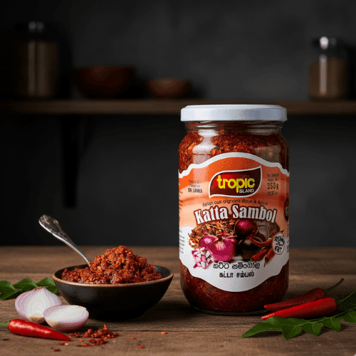 Bring the bold, spicy essence of Sri Lanka to your meals with Tropic Katta Sambol, a traditional chili paste made with finely ground red chilies, Maldive fish, onions, and a touch of lime. This 200g jar captures the perfect balance of heat, tang, and savory depth that defines true island-style sambol.