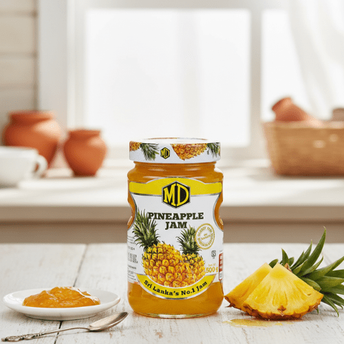 MD Pineapple Jam is a classic fruit jam prepared using carefully selected ripe pineapples to deliver a naturally sweet and refreshing tropical flavor. With its smooth texture and balanced sweetness, this jam is a favorite for breakfast tables and snack times across Sri Lankan households.