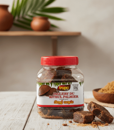 Tropic Kithul Jaggery (Kithul Hakuru) is a traditional Sri Lankan natural sweetener made from pure kithul palm sap. Rich in flavor with a deep caramel taste, it is ideal for sweetening tea, desserts, porridges, and traditional Sri Lankan recipes. Packed in a 500g pack, it delivers authentic local taste and natural sweetness.